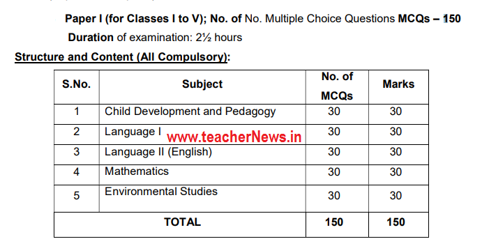 AP TET Paper 1 Exam Pattern ( Structure )