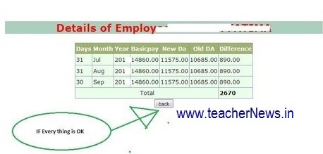 2. The System calculates the DA arrears for the period from 01-07-2016 to 31-08-2017 taking the existing basic of the employee from the database.
