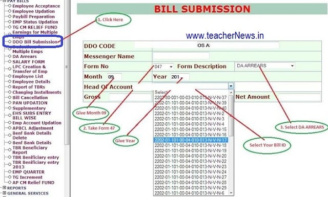 Instructions to do The DA Arrear Bill Online: