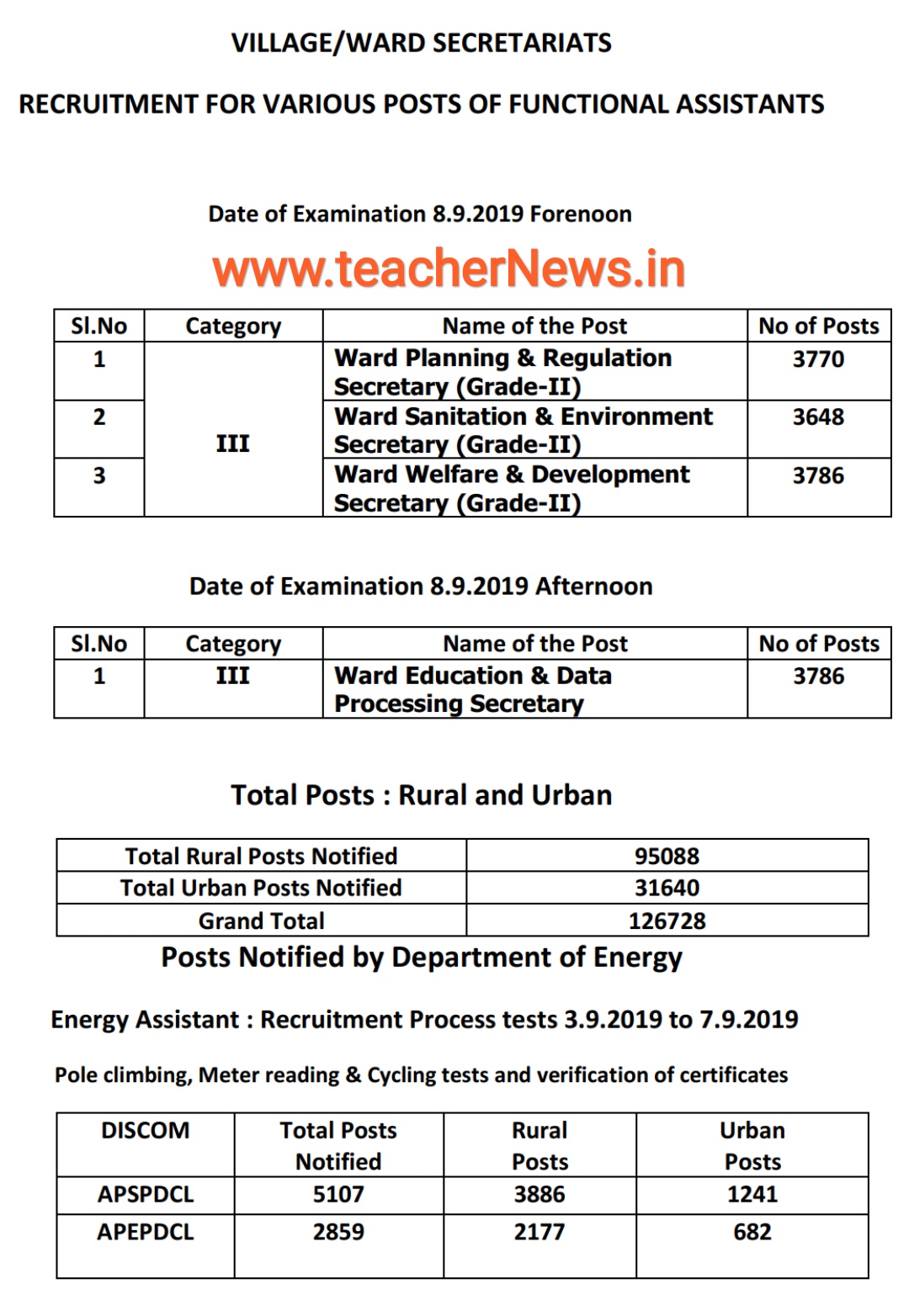 Grama Sachivavalayam Jobs Exam Schedule 2019 | Post wise Vacancies