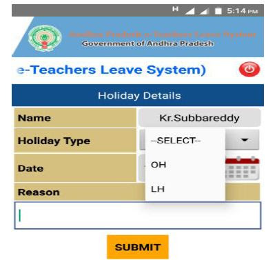 ⚫Select respective type of Holiday ie.,OH/LH.
