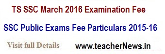 Fee Particulars , TS School Education , 10 the Class March 2016 Examination fee Due Dates , SSC Exam Subject Wise fee Particulars , SSC Exam