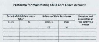 • c) The leave account for child care shall be maintained in the prescribed proforma enclosed and it shall be kept along with the Service Book of the Government servant concerned. The leave shall be deducted from the Child care leave account.