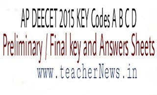AP DEECET / DIETCET 2015 Answer key Codes A B C D Official Initial key / Preliminary Key / # Final Key DEECET Exam held on 23-08-2015 Question Papers with Codes and Answers.
