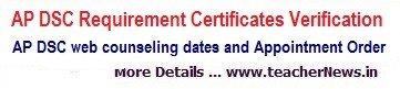 AP DSC 2015 web counseling and Certificate Verification at http://apdsc.cgg.gov.in/