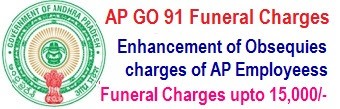 AP GO 91 Enhancement of Funeral charges : AP Teachers Increased obsequies charges from Rs.10,000/- to Rs.15,000/- in PRC 2015 on obsequies of deceased Government Employees. AP Employee’s Death Amount Enhanced in AP GO 91, obsequies Revised rates. Funeral Charges in RPS 2015,Obsequies charges in RPS 2015, Funeral Charges in 10th PRC, obsequies charges in Andhra Pradesh, Obsequies charges on obsequies of deceased Government Employees, Enhanced amount of Funeral Charges, Recommendations made by the 10th Pay Revision Commission to increase the amount of funeral charges to Rs. 15,000/.