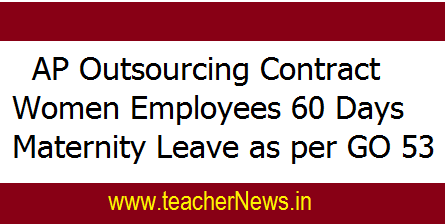 AP Outsourcing Contract Women Employees 60 Days Maternity Leave GO 53 : AP Contract Women Employees Maternity Leave GO 53, Outsourcing Women Employees Maternity Leave GO 53 G.O.No:53 Outsourcing and Contract Services- Married Women Employees- Sanction of Sixty days Paid Maternity Leave. AP Human Resources- Outsourcing and Contract Services- Married Women Employees- Sanction of Sixty days Paid Maternity Leave-Orders-Issued. AP FINANCE (HR-I.Plg-Policy) DEPARTMENT GO MS No 53 Dated: 01-05-2018. 60 Days Maternity Leave Outsourcing Contract Women Employees GO 53. Married women employees working on outsourcing or on contract basis shall be eligible for 60 (Sixty) days of paid Maternity Leave for the first two deliveries. This condition is relaxed in cases of employees having less than two surviving children.