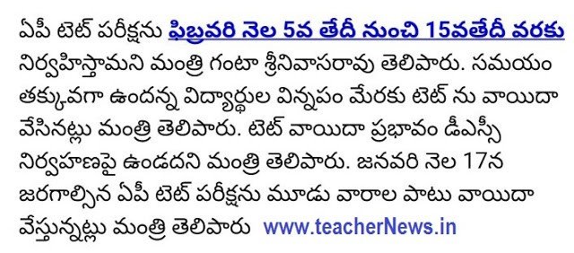 AP TET 2018 Revised Schedule/Important dates for APTET: