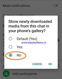 దానిపై క్లిక్ చేసి No అని OK చేస్తే Photos and videos whatsapp లో కనబడతాయి కానీ Phone memory లోకి రావు.