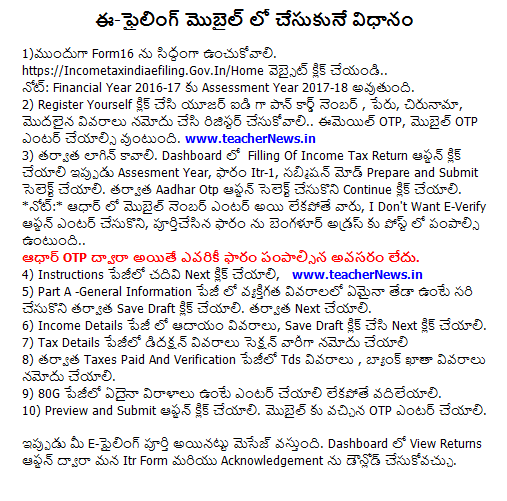 IT e Filing Steps in Telugu for Salary Employee Persons in Mobile Upload 2020-21