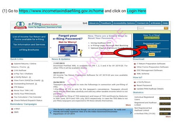 Income Tax e filling account login with new Password link here