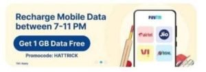 | Paytm HATTRICK | 1 GB Free Data |