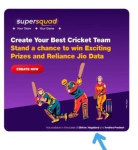 MyJio has launched the ‘SuperSquad’ Offer in the app’s Engage section. Where you can form a team for upcoming IPL matches and compete for free Jio data and other coupons as prizes. There are contests such as Dream11 in which you can participate for free and win Jio data.