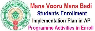 Mana Vooru Mana Badi Campaign for Admissions 2016, Rc No.01, Dt:19/04/2016 Admissions in Schools Should Complete Between 20/04/2016 and 05/05/2016, AP School Enrollment Drive between 20th April 2016 to 5th May 2016, Schedule for Enrollment Drive for the academic year 2016-17, Main Objective of Mana Vooru Manabdi Campaign, Implementation Plan, Roles of the District Level Team, Roles of the Mandal Level Team, School Level Activity, Highlight benefits provided in Govt. Schools, Schedule of Activity is as follows.