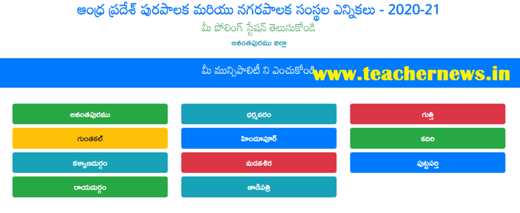వెంటనే మీ ముసిపాలిటీ ని ఎన్నుకోవాలి (Municipality)