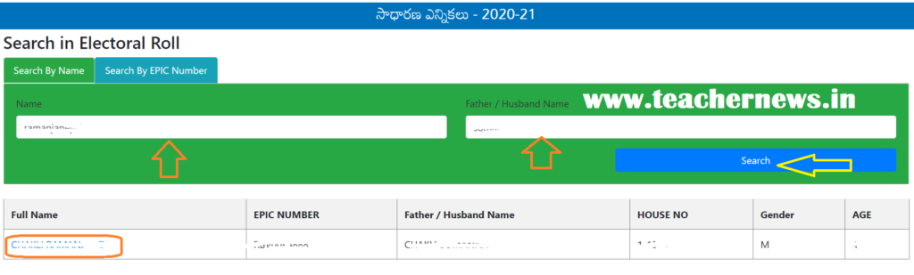 రెండవ పద్దతి ఎపిక్ నెంబర్ ఏబీటర్ చేసి సెర్చ్ చేయాలి