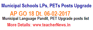 Municipal Language Pandits/ LPs, PETs Posts Upgrade in AP Municipal Schools as per GO 18