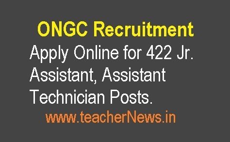 ONGC Recruitment 2018 Online Apply for 422 Jr. Assistant, Assistant Technician Posts
