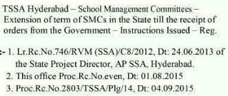 TS RC 2577 Dt.30-10-2015 , Extension SMCs in Telangana , TS School Management Committees Continues , Extended Term of TS …
