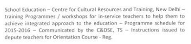 TS RC 77 Centre for Cultural Resources and Training, New Delhi – Training Programmes / Workshops – Programme schedule for …