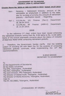 TS Gratuity revised Memo.9026 PRC 2015 Clarified that DA with Basic Pay for calculating retirement Employees gratuity (adsbygoogle = window.adsbygoogle …
