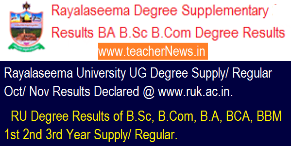 Rayalaseema University Degree Supplementary Regular Results 2018 – RU BA B.Sc B.Com Degree Results @ ruk.ac.in : Kurnool University Degree Supplementary Regular Results 2018 RU Degree 1st year BA Results, 2nd year B.Sc Results, 3rd year B.Com Degree Results. Rayalaseema University Degree 2018 Revaluation Results . Rayalaseema University Degree Supplementary Exam Results Released. BA Degree Supplementary Exam Results , B.Sc Degree Supplementary Exam Results , B.Com Degree Supplementary Exam Results , 1st year BA Degree Supplementary Exam Results , 2nd year BSC Degree Supplementary Exam Results , 3rd year BA Degree Supplementary Exam Results.