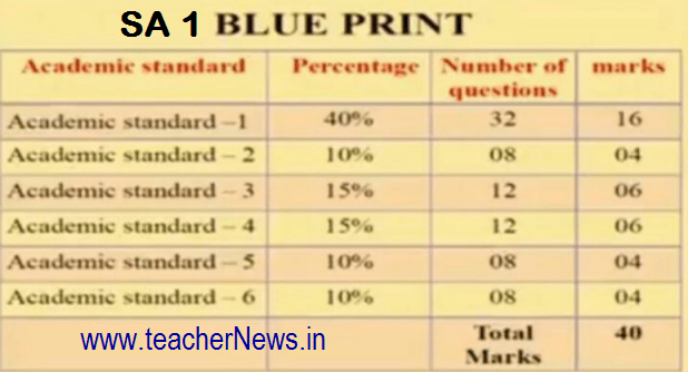 AP SA 1 Blue Print for Objective Type Question Paper Preparation for 8th, 9th Classes