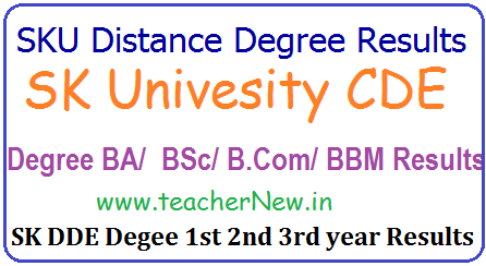 SK University Distance Degree Results, SKU DDE/ CDE Degree 1st/ 2nd/ 3rd year Years Results for BA B.Sc. B.com BCA BBM, BCA, BBA Results