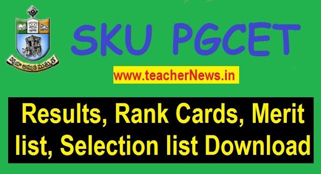 SK University PGCET Results, Rank Card, Merit list and Selection list