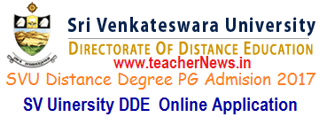 SV University Distance Education Degree PG Admission Notification 2017-18. SVU Distance PG Admission Online Application form at www.svudde.in, SVU Distance Degree BA B.Sc Admission Online Application Download. Sri Venkateswara University SVU DDE Distance PG MA, M.Com, M.Sc, MBA, MCA Admission 2017-2018 SVU DDE Notification available from www.svudde.in. Sri Venkateswara University, Tirupati, Distance Education Degree BA B.Sc B.Com Courses admission notification released and Last date for the uploading of online application. The Students can get the Notification without marks through SVU official website. SVU DDE Degree Previous 1st / final year Assignments Question Paper with answers Download and at SV University Distance Education official website.