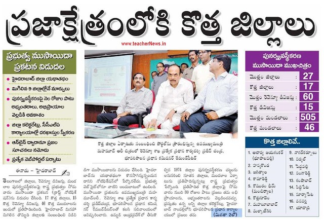 Formation/Re-Organization of new Districts, Revenue Divisions and Mandals in Telangana
