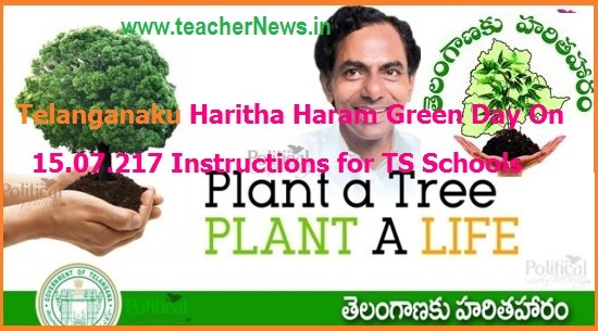 THH Telanganaku Haritha Haram Observing Green Day On 15.07.217 Instructions by C & DSE Telangana Govt of Telangana has Decided to Observe Green Day on 15.07.2017 in all Educational institutions in Telangana in the Part of Telanganaku Haritha Haram THH which Programme has been initiated to increase tree coverage from 25.16% to 33% of the total Geographical Area. HARITHA PATASHALA-HARITHA TELANGANA will be the Slogan on 15.07.2017 Green Day in All management Schools in Telangana thh-telanganaku-haritha-haram-observing-green-day-instructions.