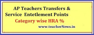 AP Teachers Transfers Service Entitlement Common points Category wise HRA -20% 14.5% 12% and Special Category Points SSC Performance Points Rationnalization Points