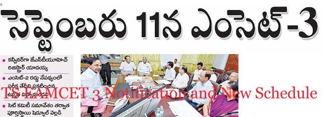 TS EAMCET 3 Notification Exam Conduct on 11-09-2016. TS EAMCET 3 Conduct New Guidelines and The Re exam will be held on 11th September, 2016. Telangana government has cancelled EAMCET-2 and announced the scheduling of EAMCET-3 for admissions into MBBS, BDS courses in Telangana. TS EAMCET 3 Notification 2016 apply EAMCET 3 Re-Exam Dates at www.tseamcet.in