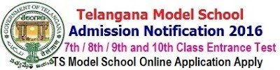 Who are Eligible and Interested Students Apply Online Application. Telangana Model School Admission for 7th Class, 8th Class, 9th Class and 10th Class Entrance Test Conducted on 19-04-2020. Schedule of submission of online application from. Telangana Model School Admission Selected candidates Publication of Merit list. Finalization of admission list at School level and Class wise display. Telangana Model School Admission Selected candidates certificate verification dates.