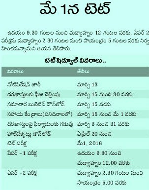 Telangana TET Notification announced on 13th March, 2016 as per latest information at tstet.cgg.gov.in Telangana TET 2015-2016 Notification TSTET Exam Date and Schedule, Telangana TET 2016 Eligibility , TSTET 2015-2016 Eligiblity, Telangana TET TSTET 2015-16 Online Application Form, Telangana TSTET 2015-2016 New Schedule Dates . TS TET Syllabus 2016, TS TET Paper 1 Syllabus and Exam Pattern, TSTET Paper II Syllabus and Exam Pattern, Download TS TET Syllabus PDF 2016 and TET TS DSC Vacancies 2016.