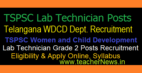 TSPSC has issued Recruitment Notification for Grade 2 Lab Technician Posts in Women Development and Child Welfare Department of Telangana for 200 Vacancy Posts. Telangana Public Service – Women Development & Child Welfare Department –Recruitment – Filling of 200 Seventy nine vacant Lab Technician post in Director, Women Development and Child Welfare Department, Telangana, Hyderabad, through the Telangana State Public Service Commission, Hyderabad – Orders – Issued.