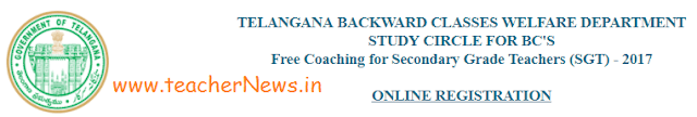 Telangana BC Study Circle TSPSC TRT SGT Teachers Recruitment Free Coaching 2017-2018