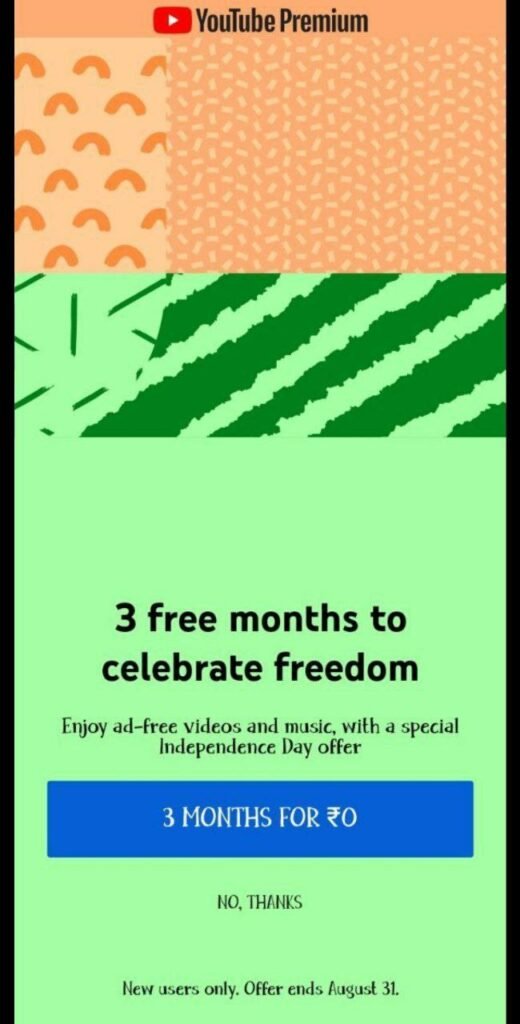 Details of the Flipkart Youtube Free Premium Offer: